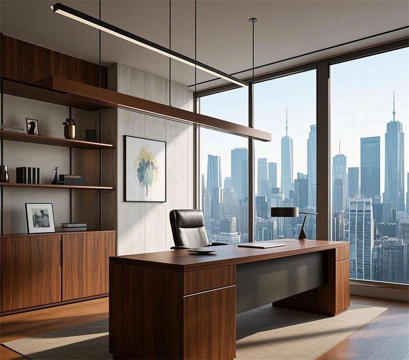 经理办公室和总裁办公室均以低调奢华为主,全景落地窗提供开阔视野,玻璃隔断与金属材质结合,现代艺术品装饰,彰显身份与品味。大会议室配备高端投影设备和环形灯具,玻璃墙面增强通透感;小会议室则采用圆形会议桌,紧凑而温馨,适合小型讨论。休息区设计舒适放松,沙发与吧台组合,绿植墙点缀,为员工提供轻松交流的空间。