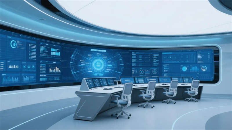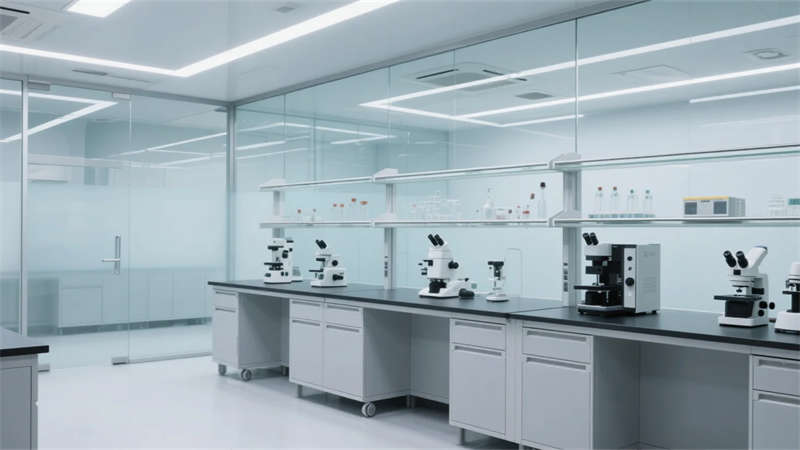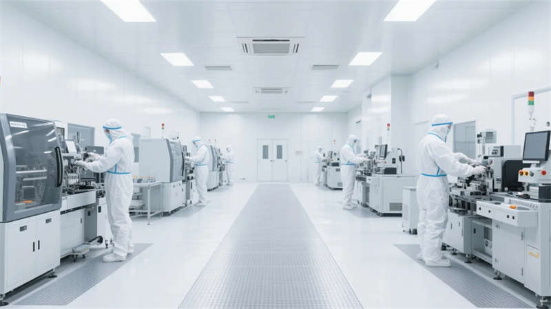 本项目以现代简约美学重构半导体产业空间,将科技功能与人文环境无缝衔接。建筑外立面采用玻璃与金属的碰撞,几何切割线条传递工业力量感,同时通过灰白主色与局部科技蓝的跳色,营造冷静理性的视觉基调。内部空间严格遵循洁净生产逻辑,千级无尘车间以纯白环境保障精密工艺,研发实验室则通过透明隔断与智能设备凸显技术前沿性。