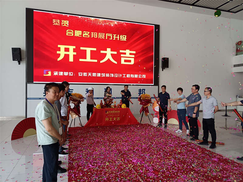 由天思建筑装饰承接的吉利名邦汽车4S店升级项目于2022年5月23开工,双方公司代表莅临现场,安徽天思建筑装饰全体员工,恭祝业主开工大吉,再次感谢吉利名邦展厅对公司的认可,公司必定不负所托,再次打造完美项目!