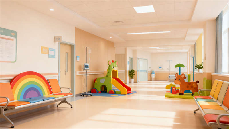 住院区域的装修兼顾温馨感与功能性,病房内布置温馨的床品与收纳空间,同时预留足够的活动区域,方便孩子在室内活动。走廊两侧墙面设置趣味互动装置与科普小知识展示区,让孩子在行走过程中能获得乐趣与知识。游乐区装修则以安全为首要原则,地面采用防滑材质,游乐设施经过特殊处理,确保孩子在玩耍时的安全,同时通过丰富的色彩与造型,为孩子打造专属的欢乐空间。整体装修设计将医疗功能与儿童友好理念深度融合,为合肥这座城市的孩子们打造出一个充满关爱与温暖的就医环境。?