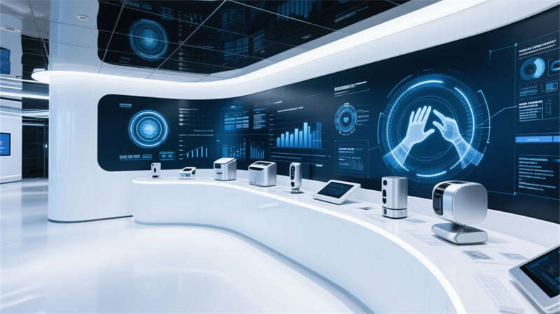 全厅采用模块化智慧系统,互动桌面、全息投影与流体艺术墙实时响应参观行为,在展示功能性与人文关怀间建立精妙平衡。最终的未来畅想区以镜像空间延展视觉维度,在粒子光舞中激发创新对话——这里不仅是企业实力的窗口,更是合肥创新精神的沉浸式体验场域。
